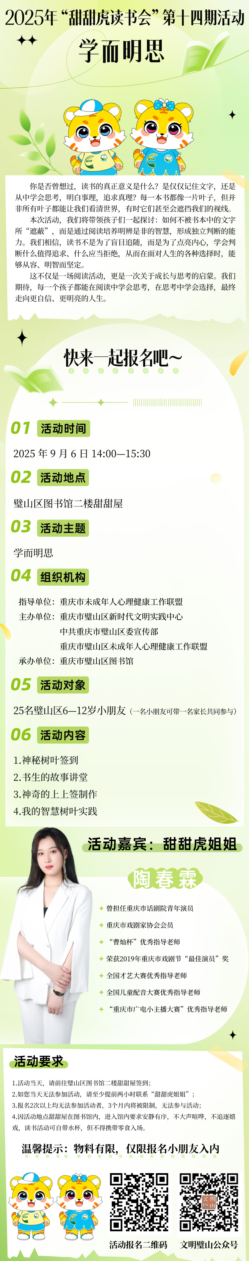 活动报名 | 2025年璧山区“甜甜虎读书会”第十四期活动开始报名啦~