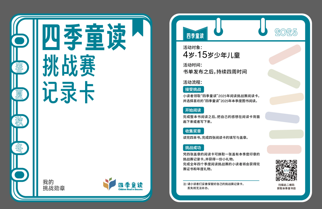 注:1.请小读者们妥善保管好自己的挑战赛记录卡和完赛证书(四季),丢失将无法补办。