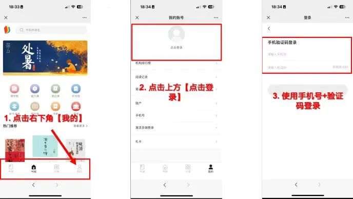 点击【我的】进入个人页,点击【登录】,输入“手机号+验证码”后点击登录