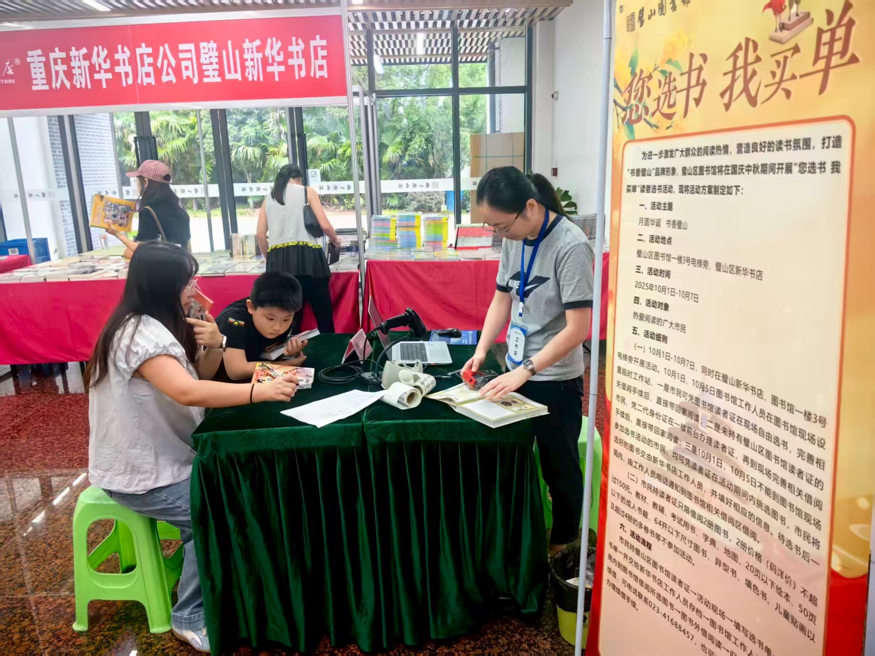 双节期间,璧山区图书馆与新华书店联手推出“您选书,我买单”读者选书活动,将图书采购权直接交到读者手中。新华书店专门调配1000余册最新畅销图书供读者现场挑选。活动吸引千余人次参与,最终成功借阅图书百余册,种类涵盖儿童文学、少儿绘本、小说散文等领域,精准反映了读者的阅读偏好。这种创新模式不仅丰富了读者的阅读体验,更让读者在图书馆资源建设中拥有了更多话语权。